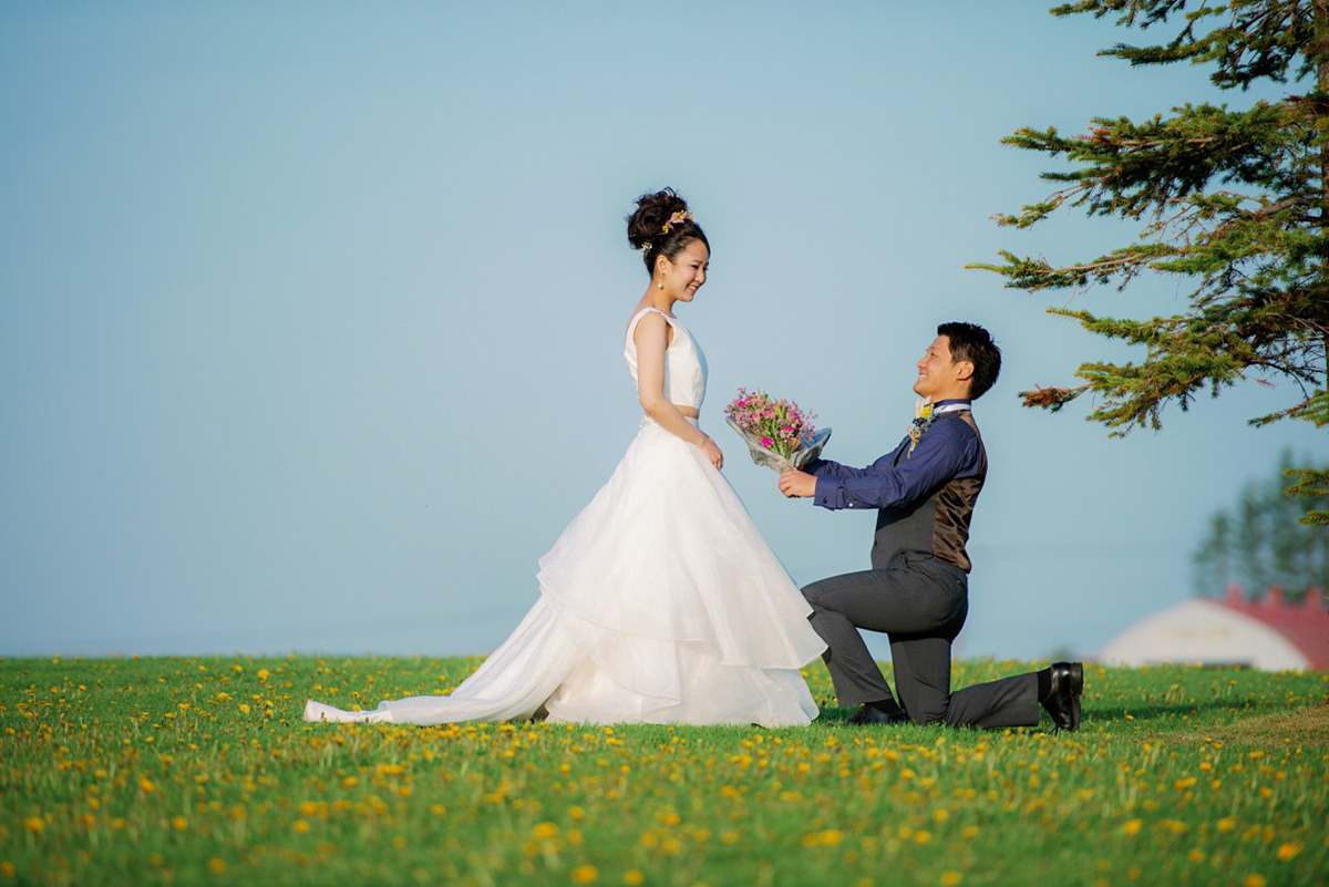 また美幌町のフィールドの中でふたりだけの思い出を写真に残すフォトウェディング